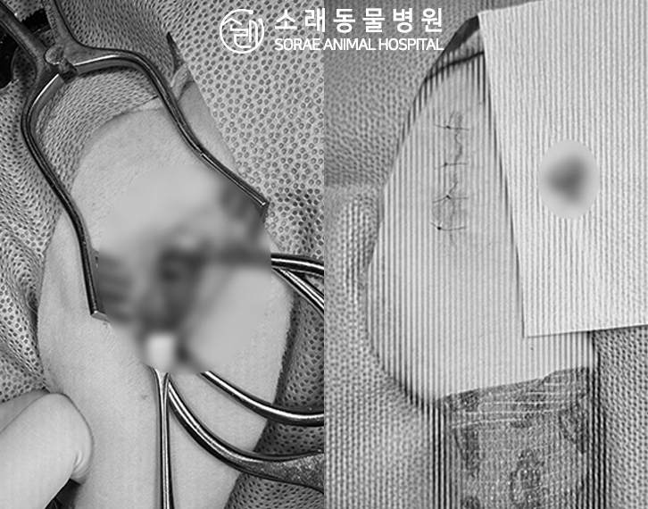 문제의 원인이 되는 대퇴골두를 깔끔하게 절단해 주었습니다.