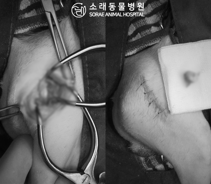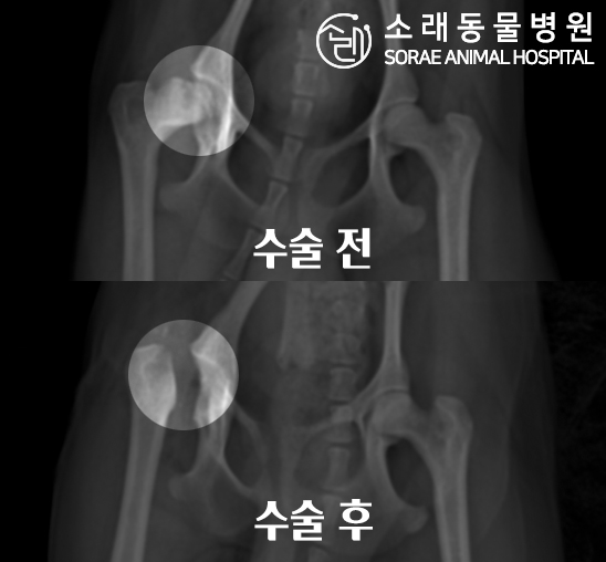 문제의 원인이 되는 대퇴골두를 깔끔하게 절단해 주었습니다.