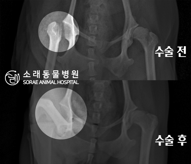 문제의 원인이 되는 대퇴골두를 깔끔하게 절단해 주었습니다.