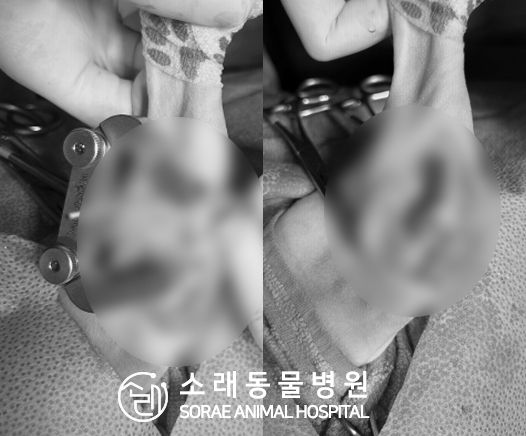 반대 방향으로 밀려나 어긋나있던 대퇴골과 정강이가