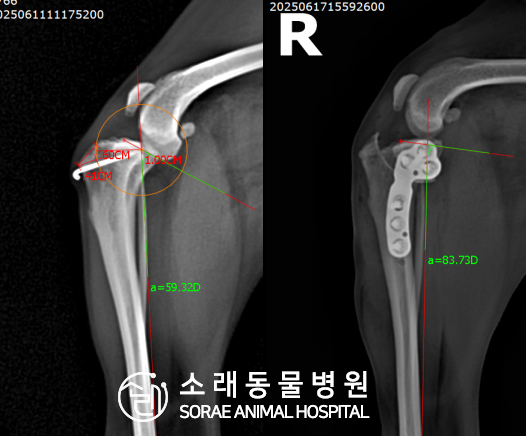 제 자리를 찾으면서 무릎의 각도가 교정된 것을 확인할 수 있습니다