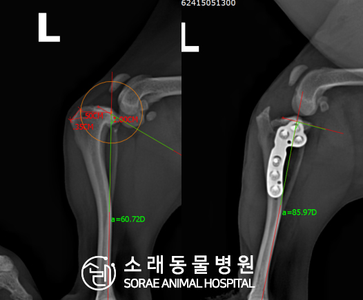 제 자리를 찾으면서 무릎의 각도가 교정된 것을 확인할 수 있습니다