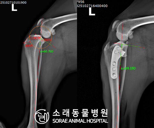 제 자리를 찾으면서 무릎의 각도가 교정된 것을 확인할 수 있습니다