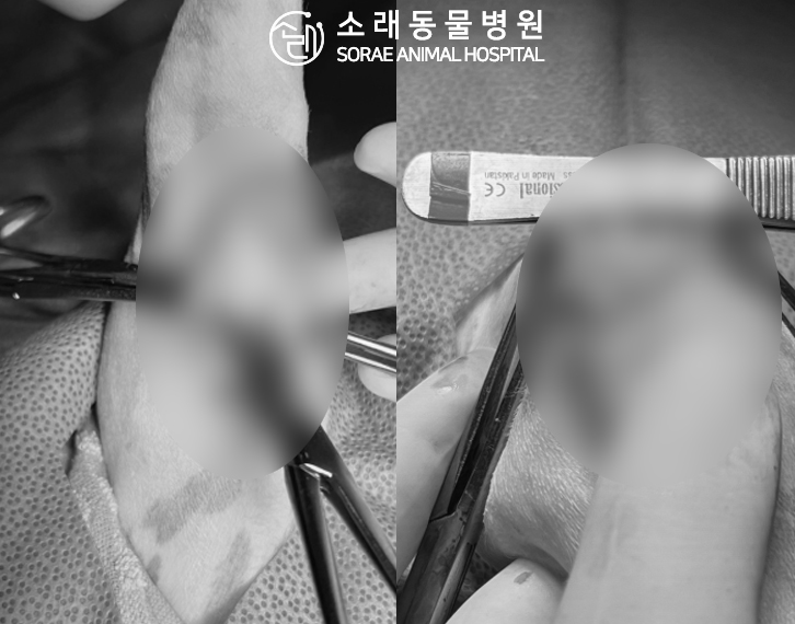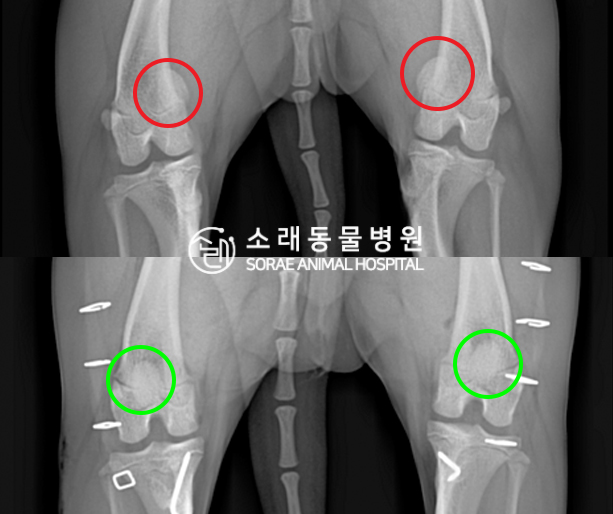 수술전과 수술후에 촬영한 콩이의 슬개골