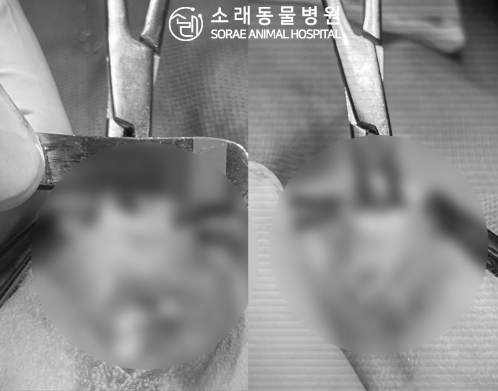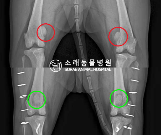 수술전과 수술후에 촬영한 솜이의 슬개골