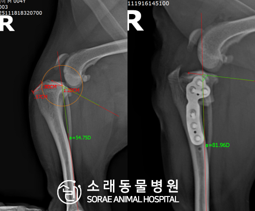 제 자리를 찾으면서 무릎의 각도가 교정된 것을 확인할 수 있습니다