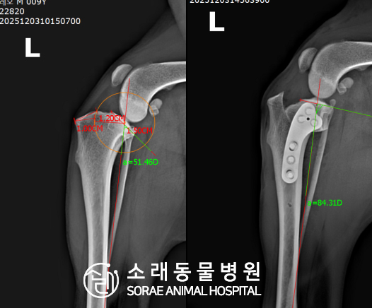 제 자리를 찾으면서 무릎의 각도가 교정된 것을 확인할 수 있습니다