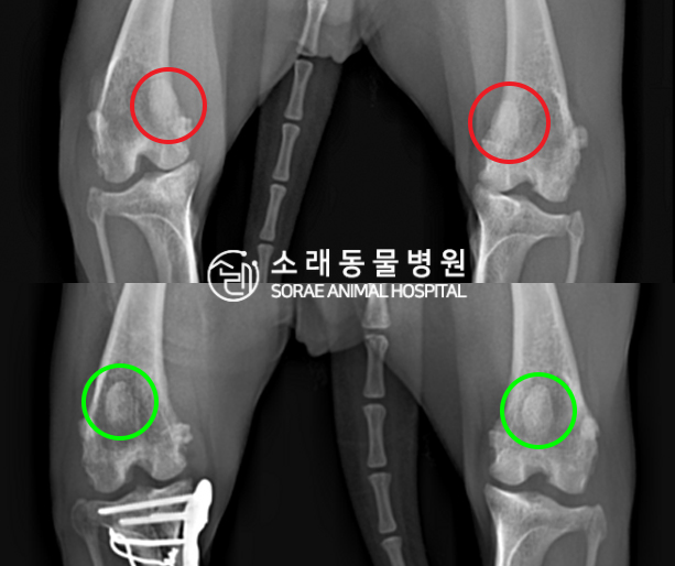 수술전과 수술후에 촬영한 이슬이의 슬개골